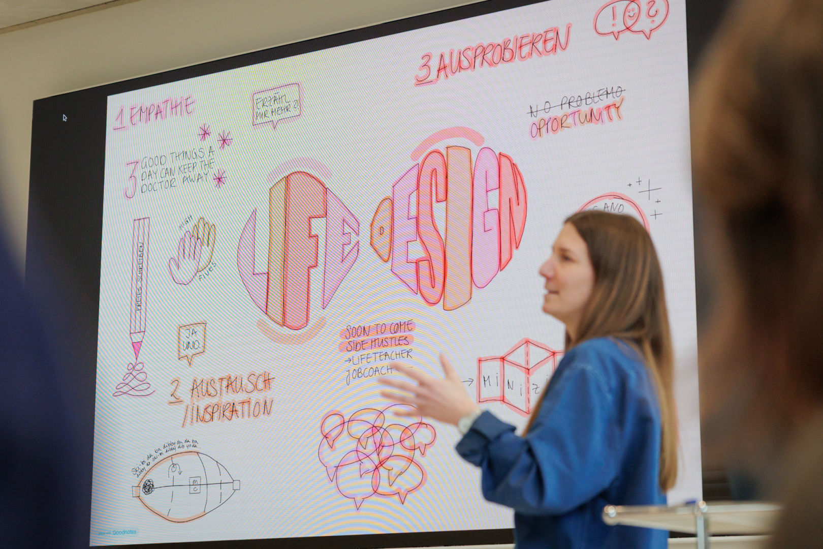 Neben 2-3 virtuellen Events am Abend mit ca. 2 Stunden machen wir einmal pro Jahr auch einen physischen Event, wo neue Methoden gezeigt und ausprobiert werden und weitere Zukunftsthemen wie KI und Life Design besprochen werden. Im Zentrum steht aber auch da der Austausch untereinander, sei es formell über die Life Design Projekte oder eben auch informell beim Kaffee oder bei Drinks und Snacks.