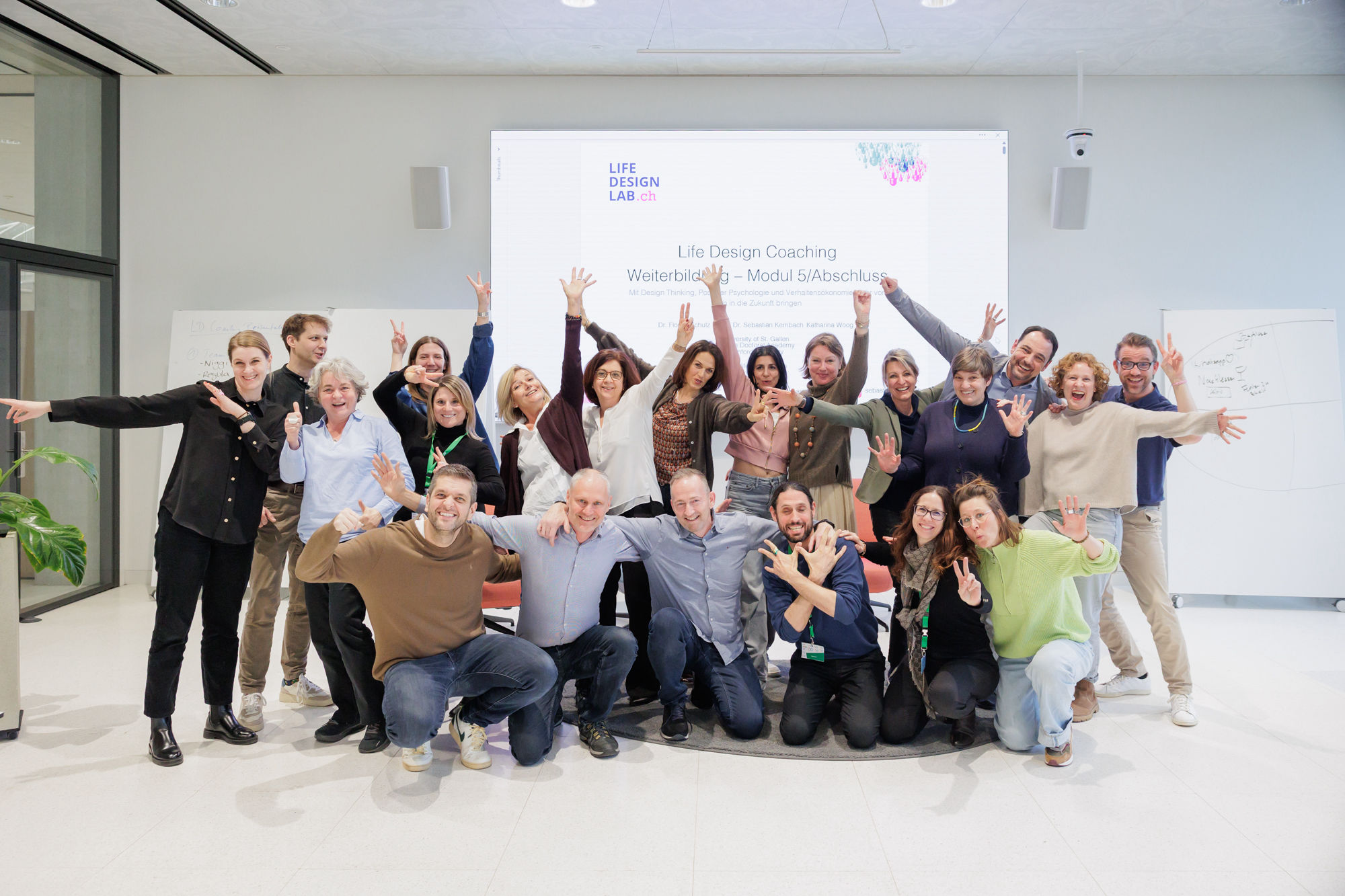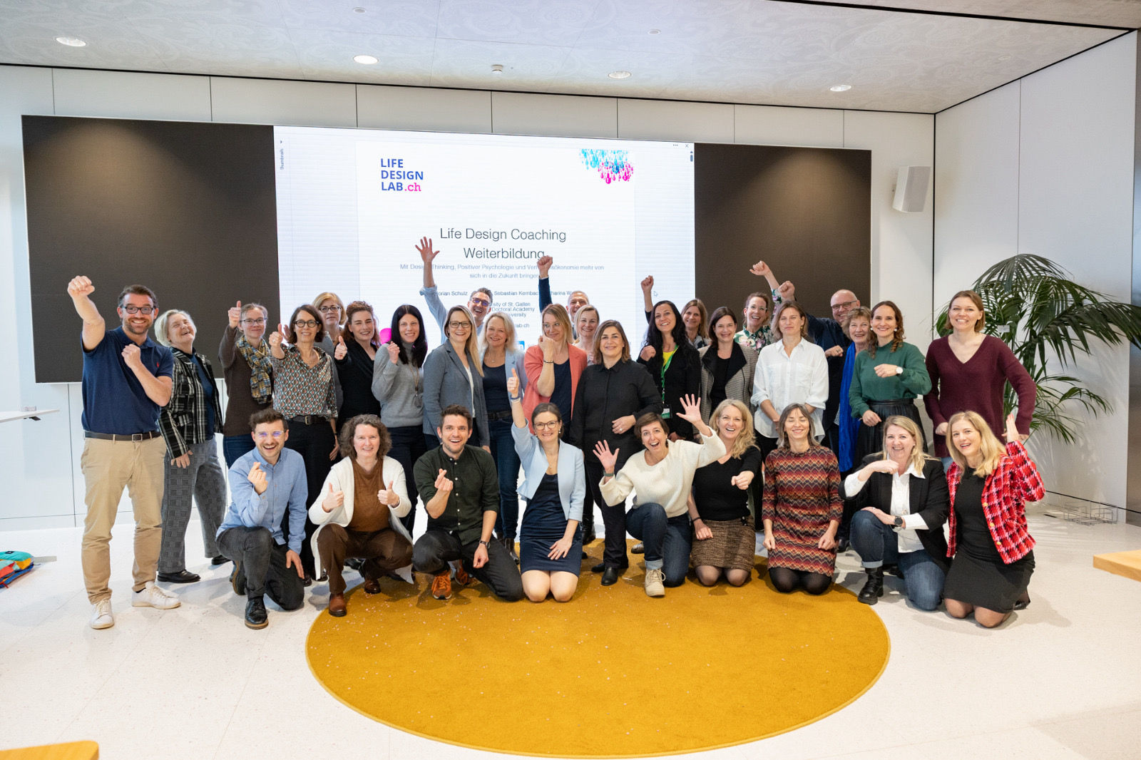 Die erste Gruppe von zertifizierten HSG Life Design Coaches und ein bunter Mix aus Coaches, Workshop Facilitator, Führungskräfte, Mitarbeitende in der Karriere- und Laufbahnberatung, mit Fokus auf Jugendliche, Erwachsene und Übergang in die Rente, aus der Schweiz, Deutschland und Österreich.